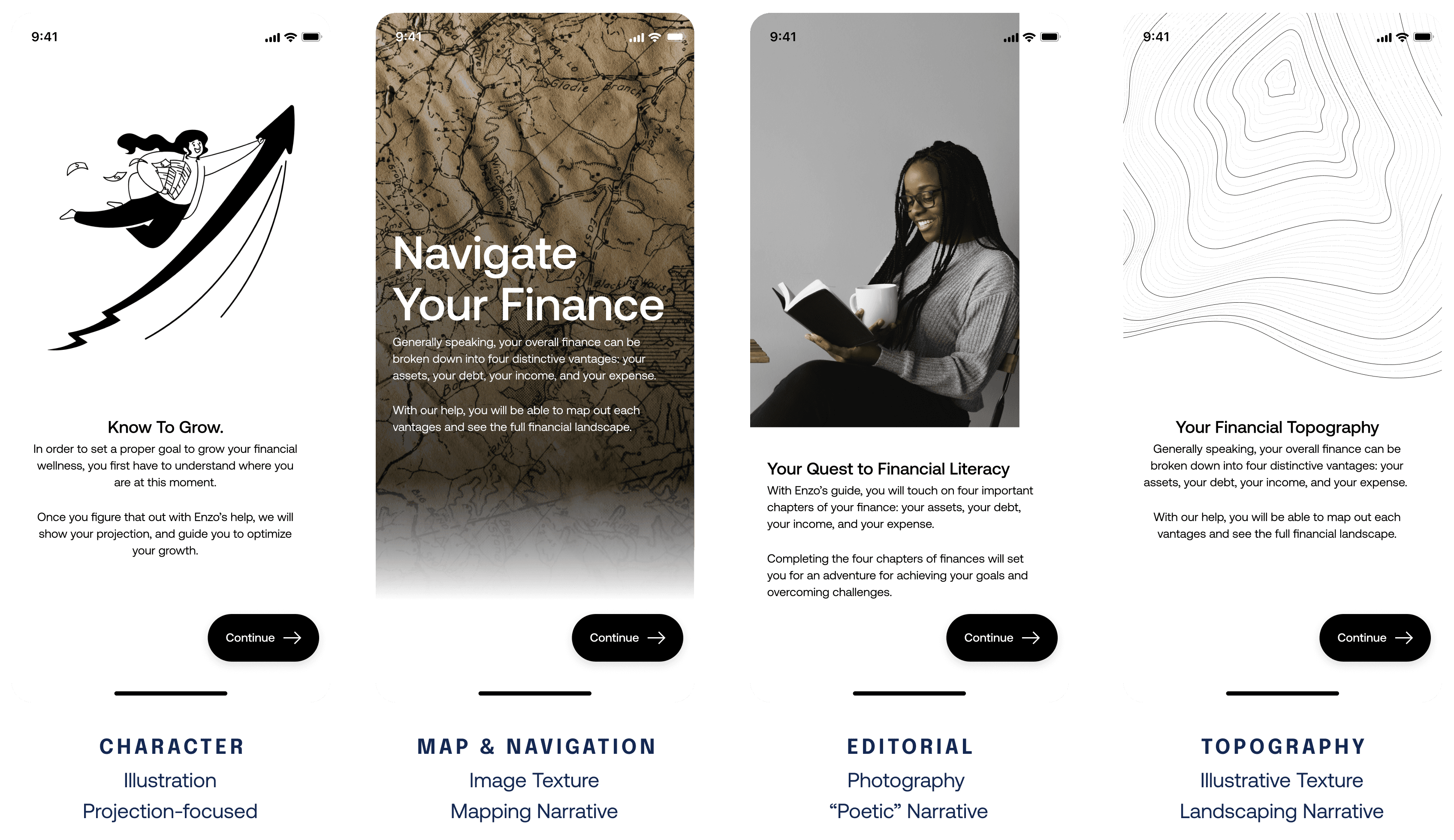 While this created a clean aesthetic, it lacked warmth and expressiveness. I saw the onboarding redesign as an opportunity to evolve the visual system.