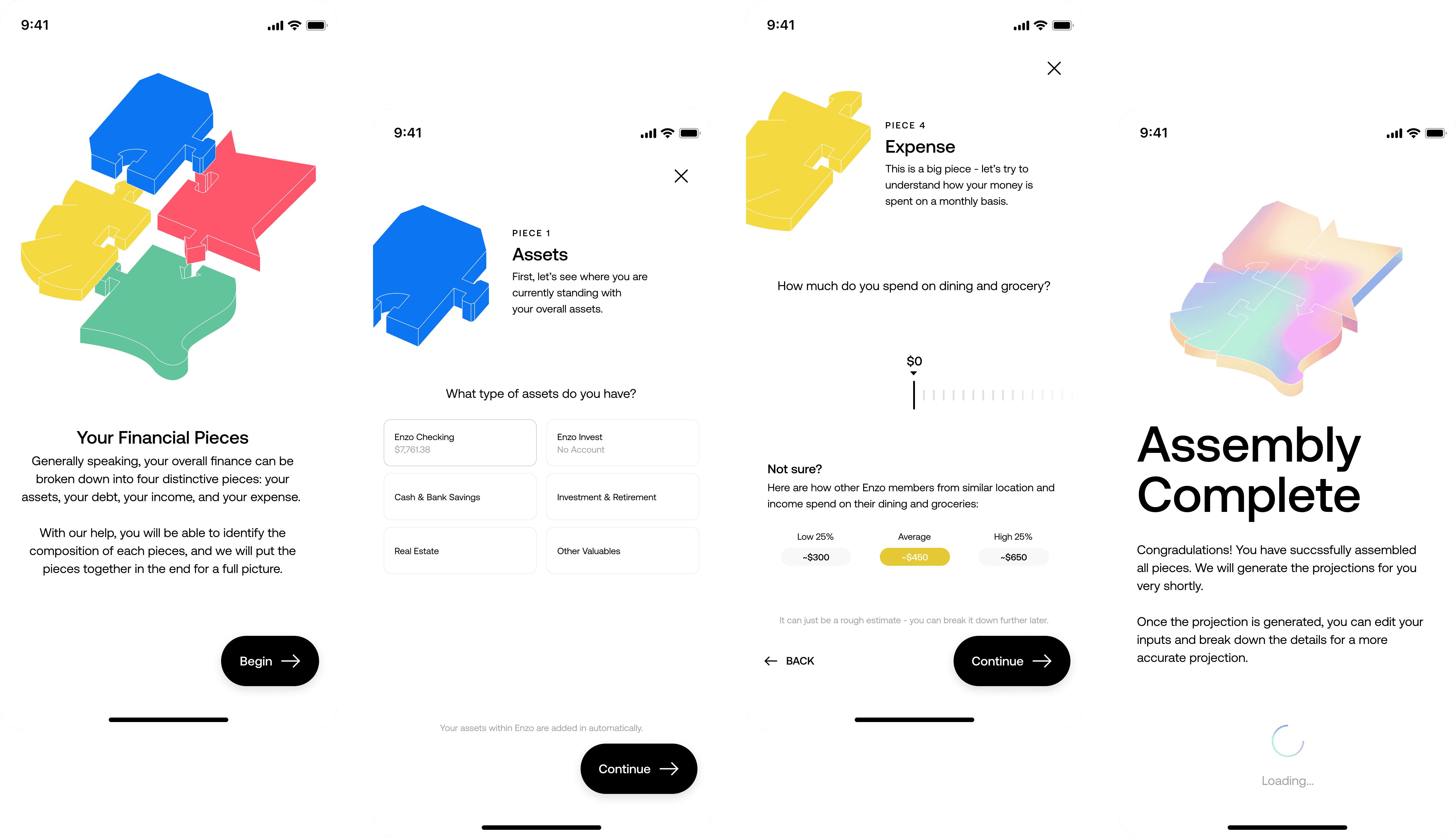 After entering income details, users were prompted to provide expense information. For those already using Enzo’s debit card, data was automatically populated to reduce effort.