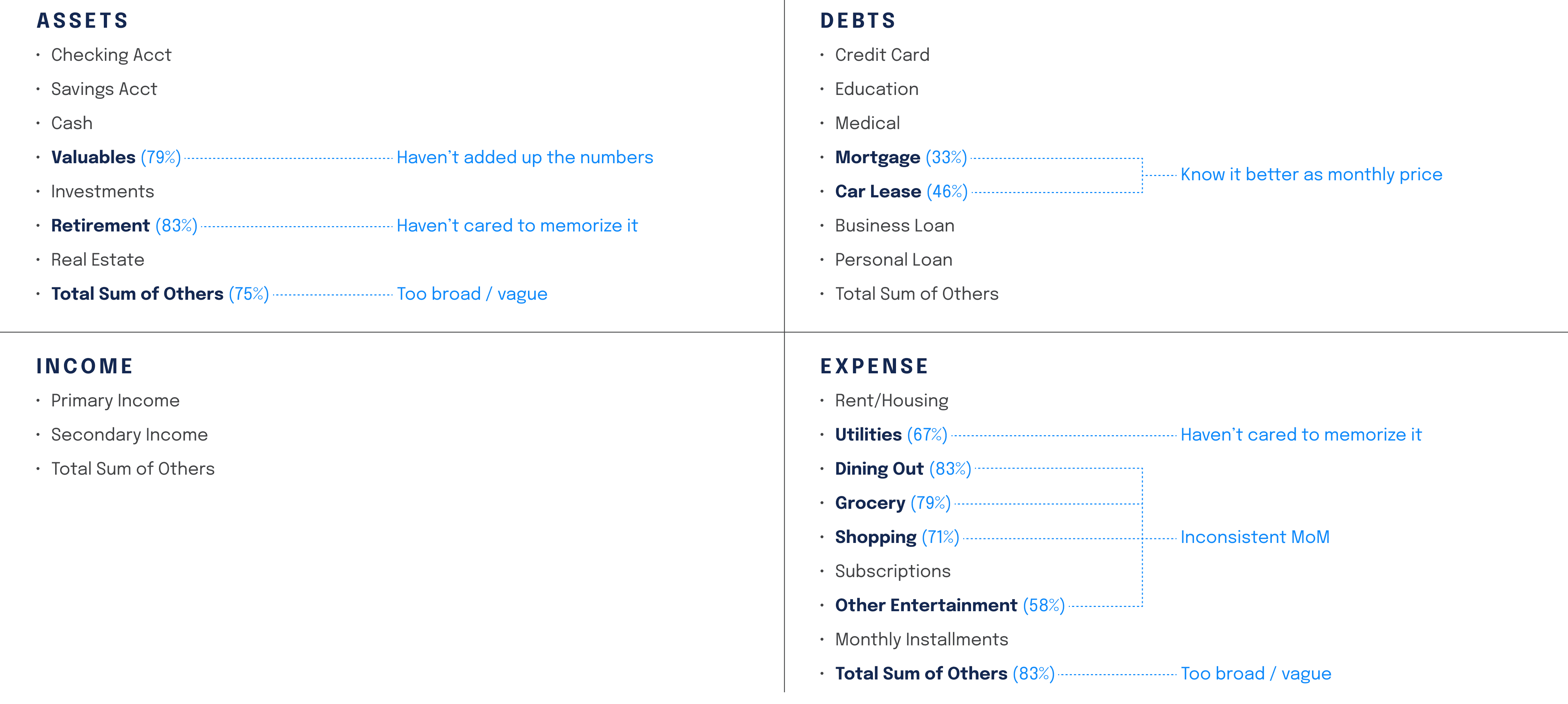 I led discussions on determining the appropriate amount of information to collect during onboarding. While gathering detailed financial data would improve accuracy, it risked adding friction and cognitive load. After aligning with stakeholders, we prioritized accessibility to the core experience and opted for a streamlined onboarding flow.
